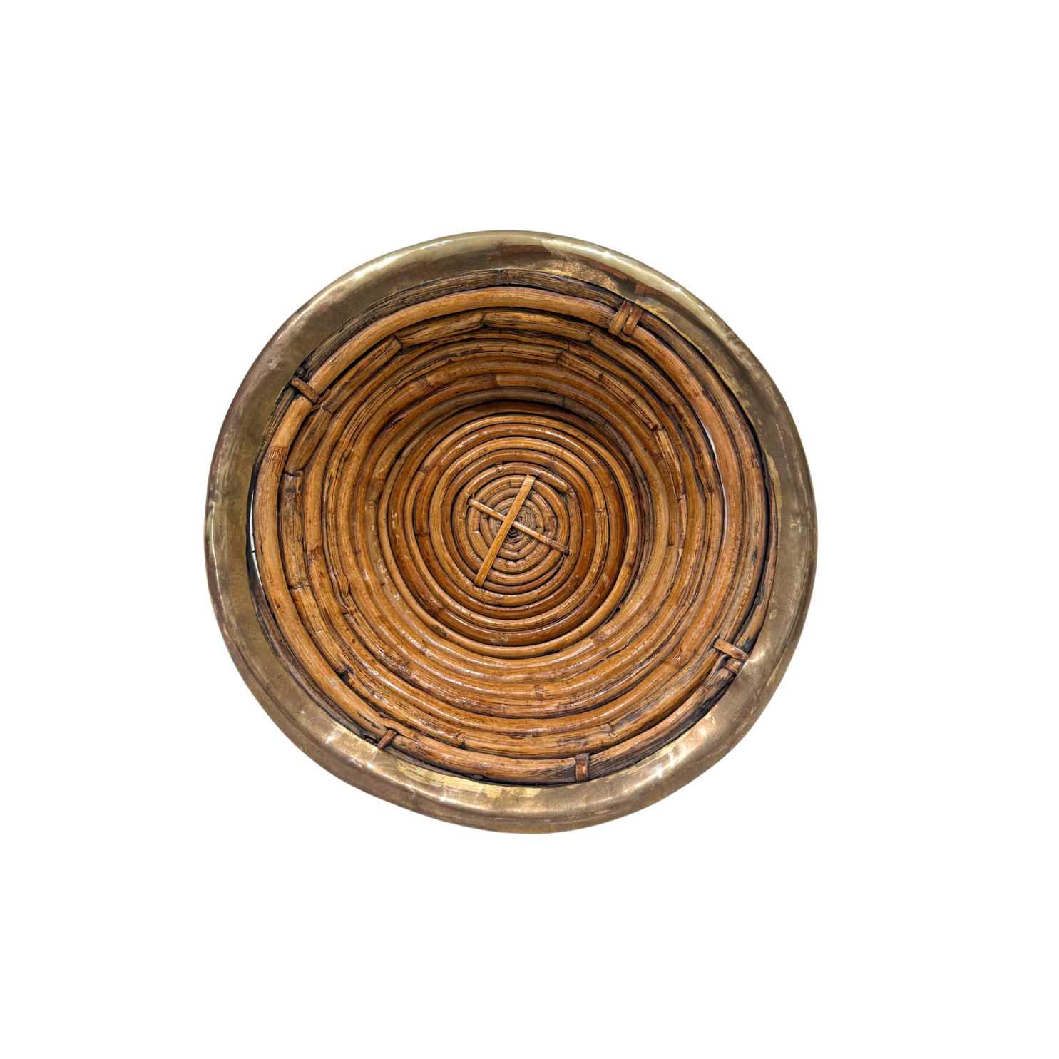 #2 Vintage Italian Rattan Basket Bowl with Brass Trim in the Style of Gabriella Crespi