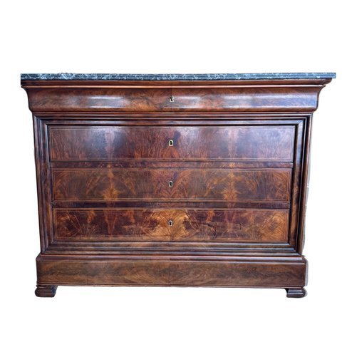 Antique Louis Philippe Style Mahogany Commode with Black Marble Top