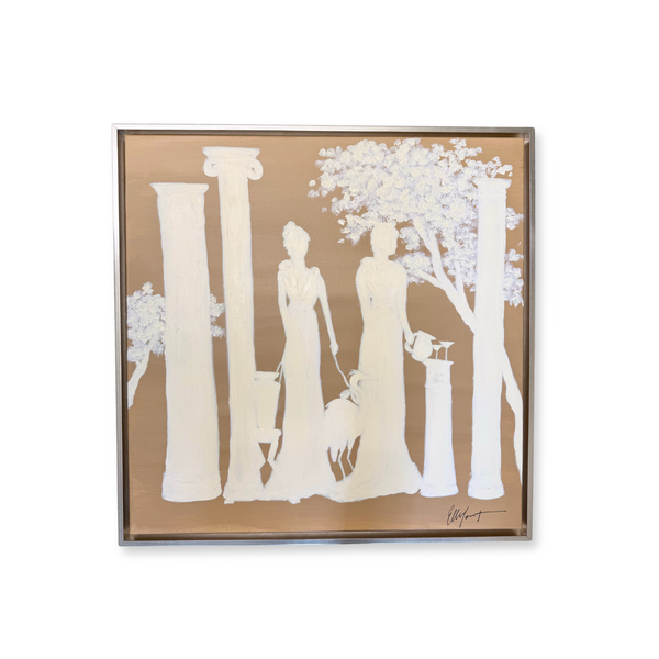 About : Drawn to architecture and beautiful, effortless interiors, Elle's style has slowly evolved over time and over her travels. Very much an eclectic at heart, she is intrigued by the unassuming in a space. She loves the mix of new and old, perhaps modern mixed with French or New England interiors. Elle Yount is very much a President George Washington meets Picasso type girl, stylistically. Having a degree and background in Interior Design and working in both Nashville and San Francisco has allowed her to see all plethoras of resources in furnishings, art and decor over the years. Elle has always been on the lookout for unique, one of a kind pieces. She began creating pieces for herself and her clients and there, found her passion. These days Elle spends more and more of her time, creating, sketching, designing and working on the neverending list of home projects with her husband at their residence in Nashville, TN. Painted using acrylics on canvas.