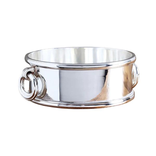 Inspired by a unique piece found tucked away in one of our favorite antique markets in Europe, our Ring-Handled Bottle Coaster makes serving a bottle of wine on the bar or dining table all the more chic. It doubles as a stand-out bowl for nuts or olives at cocktail time. Silver plated.