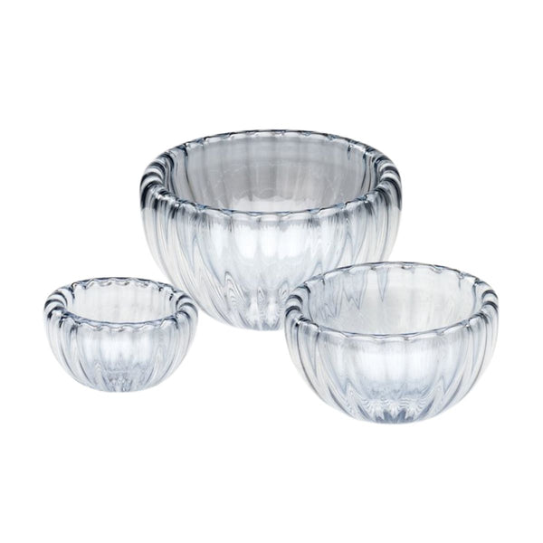 About: These almost weightless hand blown nesting bowls are double walled, giving them a pleasing functional structure while catching the light on their gracefully textured surfaces. These bowls are hand made so no two items are exactly the same.