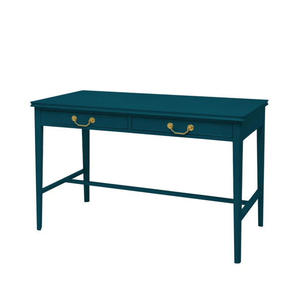 Handmade high gloss lacquer writing desk with brass hardware and contrasting colour inside the drawers. Interior of drawers is in contrasting Cinnabar color.