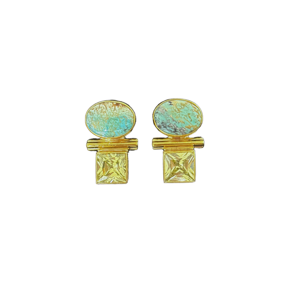 Jan Mclaughlin Earrings - Light Green Peridot and Turquoise