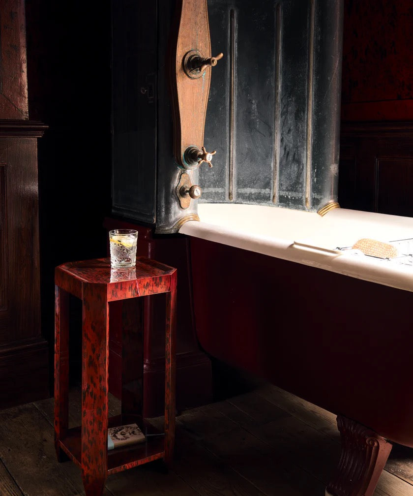 About: An elegant and refined table with an inset geometric top and lower shelf, available in a range of two-tone colourways. The Felix Drinks Table gently nods to the glamorous golden age of twentieth century Art Deco lacquer and is ideal beside an armchair or between a pair of chairs. Handmade in traditional Son Mai Lacquer.