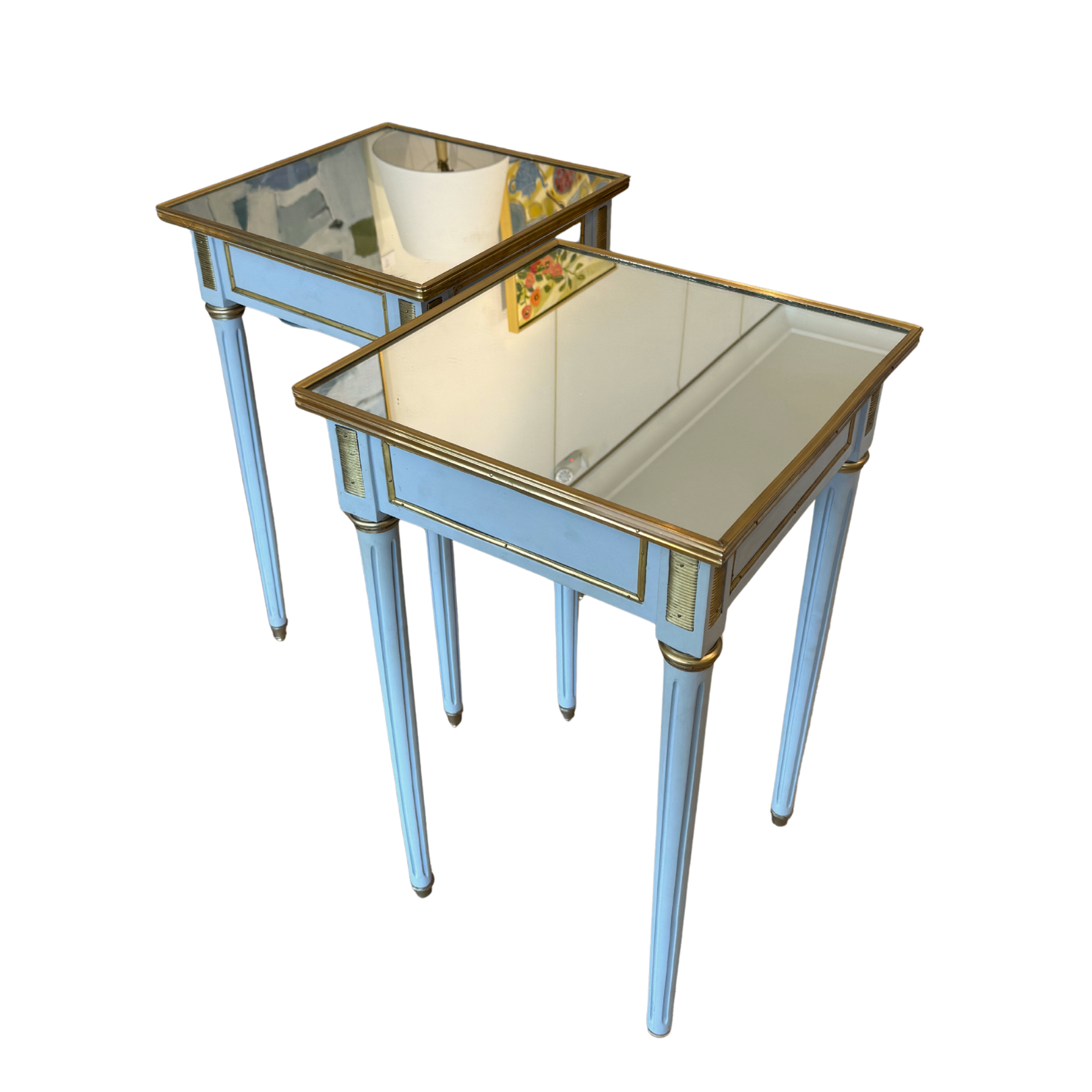 Pair of Painted End tables in the Style of Louis XVI with Mirror Tops