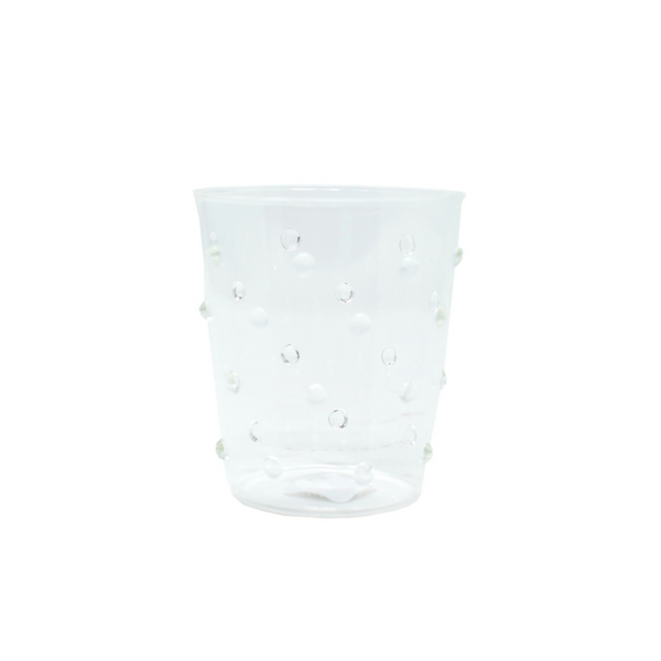 About : It's a party! These hand blown cocktail glasses are sure to get any party started. They are delicate, sturdy, and each one is adorned with clear glass dots all around them. Note: Dishwasher Safe