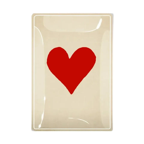 Red Long Heart Decoupage Glass Tray