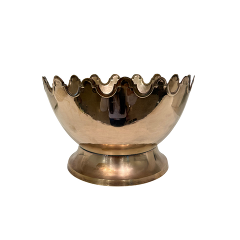 Vintage Scalloped Solid Brass Cachepot on Pedestal