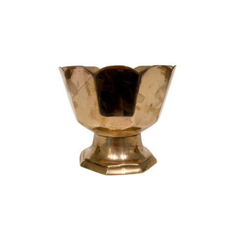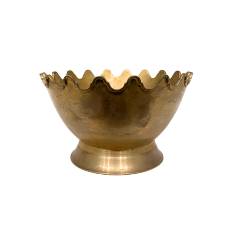 Vintage Scalloped Solid Brass Pedestal Bowl