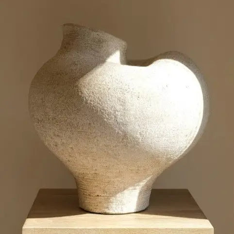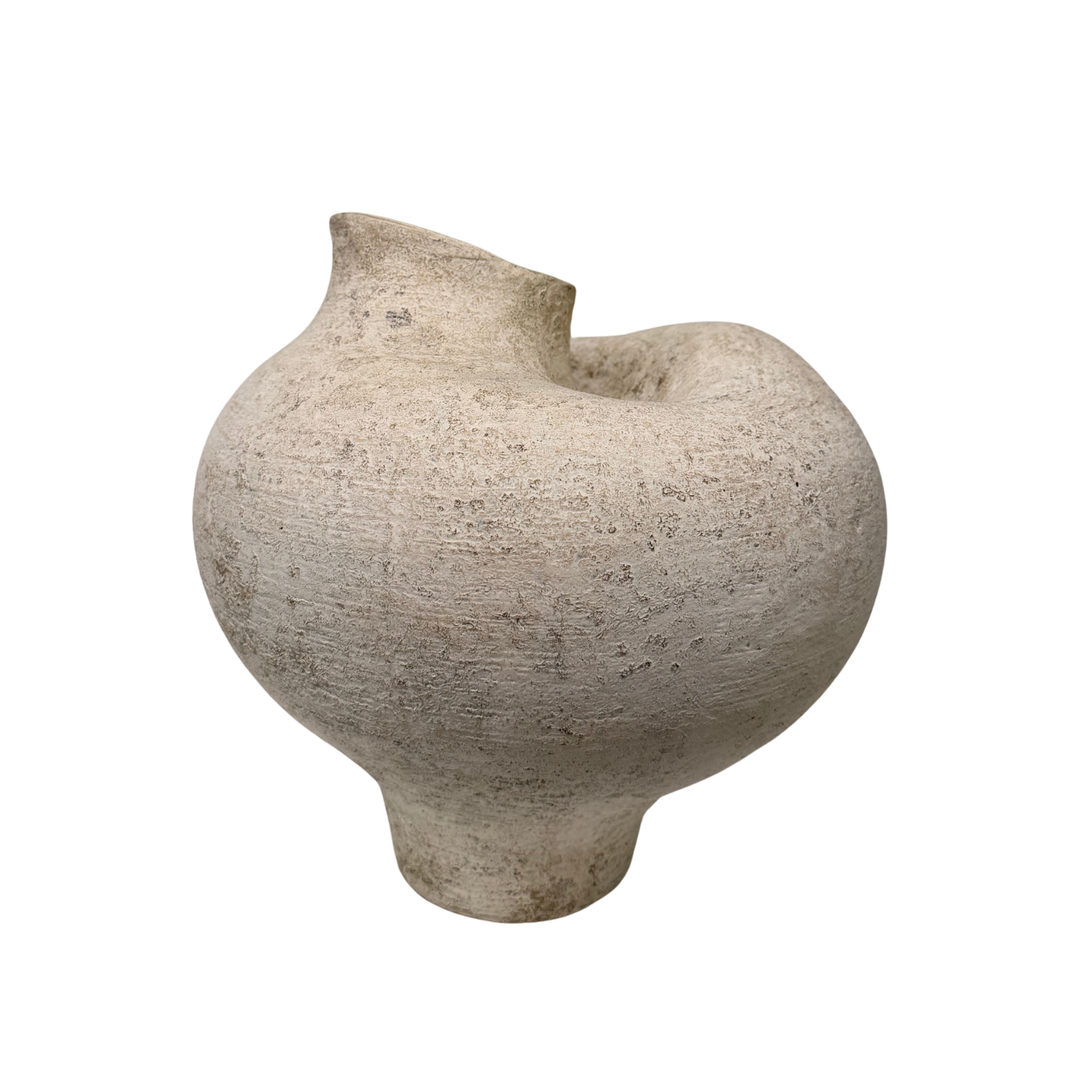 Item: The Goa vessel from the Prambanan collection is a stylish organic-hued terracotta vase handmade by local Indonesian artisans. A cavernous vessel taking inspiration from the entrance of the famous Goa Gajah temple, the Goa is a mesmerizing sculpture with distinct curves and dips crafted using sculpting techniques that have been passed down through generations, topped with a vintage inspired finish. Materials: Terracotta clay, cream underglaze, highly textured matte cream glaze.