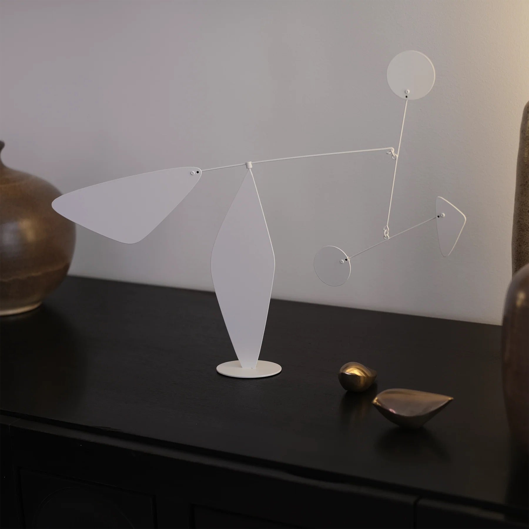 About: This metallic sculpture, with its timeless and refined style, evokes a subtle harmony between rigor and fluidity. Its delicately crafted blades, made of high-quality aluminum, float like leaves carried by the wind, supported by fine, hand-bent steel stems. Anchored by a solid base, it combines lightness and stability, infusing your space with a touch of serenity. Enclosed in an elegant blue box, embossed with gold leaf, it is more than just an object: it is a unique piece to be gifted to yourself or to those you hold dear.