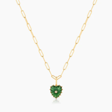 She's Malene's baby sister, a smaller hand-carved jade heart charm with a sparkling center stone. A favorite for gifting and layering.