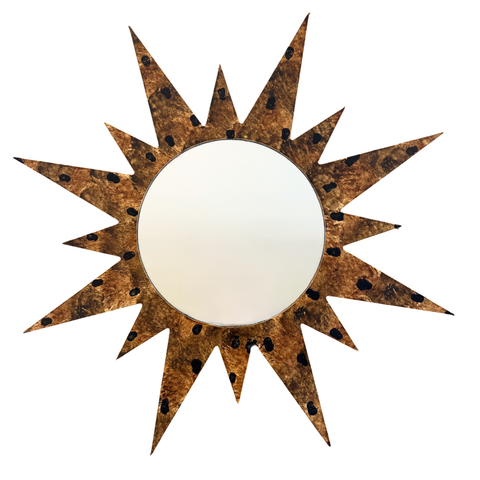 Hand Painted Starburst Mirror in Brown Faux Bois