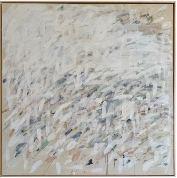 Acrylic, gesso, charcoal & oil pastel on canvas with natural wood floater