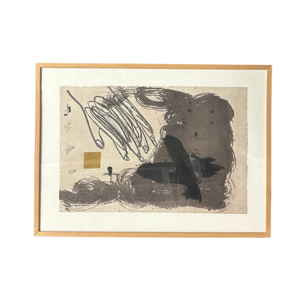 About: Framed aquatint and etching on paper, 1988, Untitled, from "Portfolio 12th Anniversary of Galeria Joan Prats," signed lower right Tapies (Antoni Tapies, Spain, France, 1923-2012), Galeria Joan Prats label verso, sight: approx 15"h, 22.25"w, overall: approx 20.5"h, 28"w This is a previously owned item from Paloma Contreras's Personal Collection. This item is FINAL SALE.