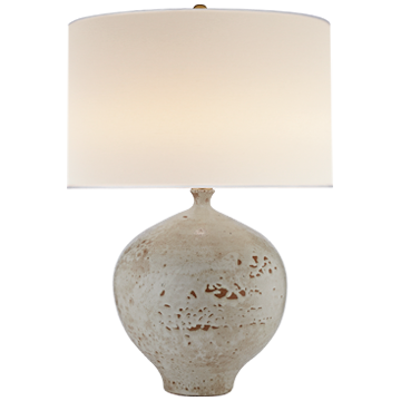 The Gaios Table Lamp is crafted with a ceramic body highlighting the textural elements that make this lamp unique. The pharaoh white finish highlights the design and is topped off with a linen shade.