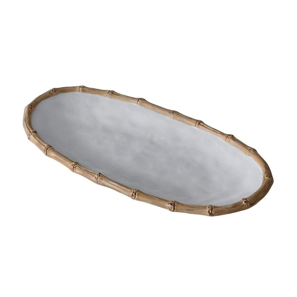Natural glamour; classic Bamboo style! The Bamboo Large Oval Platter (White and Natural), an essential serving piece from Beatriz Ball's VIDA Collection of luxury melamine, is the result of a collaboration between the award-wining tabletop company and noted illustrator, August Wren. With a bamboo inspired rim and a brilliant white surface, the generous oval platter works well with our VIDA Bamboo dining sets, serving pieces and flatware. Create a table with a carefree and classy, Beatriz Ball twist! It looks great when sharing a table with GARDEN Bamboo items from our signature metal line too. Perfect for a variety of serving needs, the platter has the luster, heft and look of a ceramic piece. Made of luxury melamine for everyday enjoyment, this piece is ideally suited for indoor and outdoor entertainment.