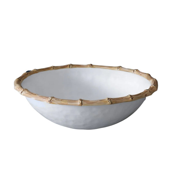 Natural glamour; classic Bamboo style! The Bamboo Large Oval Platter (White and Natural), an essential serving piece from Beatriz Ball's VIDA Collection of luxury melamine, is the result of a collaboration between the award-wining tabletop company and noted illustrator, August Wren. With a bamboo inspired rim and a brilliant white surface, the generous oval platter works well with our VIDA Bamboo dining sets, serving pieces and flatware. Create a table with a carefree and classy, Beatriz Ball twist! It looks great when sharing a table with GARDEN Bamboo items from our signature metal line too. Perfect for a variety of serving needs, the platter has the luster, heft and look of a ceramic piece. Made of luxury melamine for everyday enjoyment, this piece is ideally suited for indoor and outdoor entertainment.