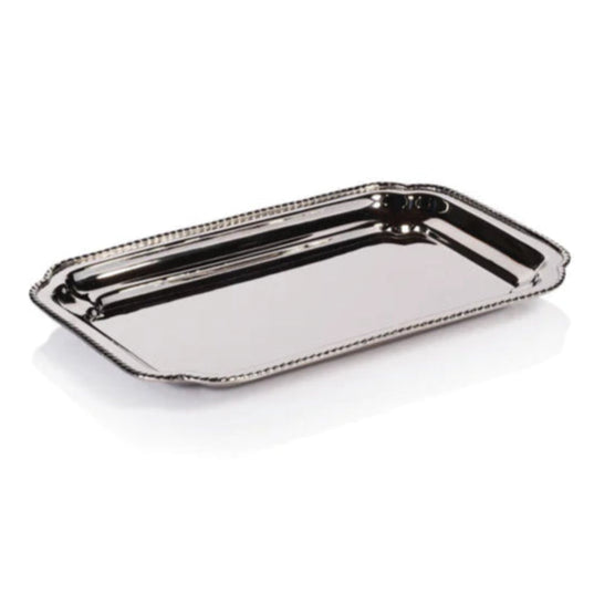 Polished Nickel blends classic elegance with modern refinement. Featuring a sleek, reflective surface and a delicately beaded trim, this versatile tray adds sophistication to any setting. Available in two sizes, it's perfect for serving, organizing, or displaying decorative accents with a touch of timeless luxury.