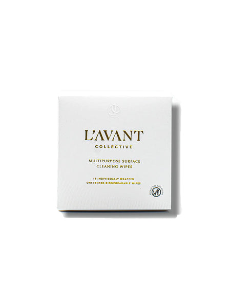 Always bring protection wherever you go. The first of its kind, our convenient, individually wrapped wipes will allow you to clean on the go in style. Slip the box or wipes into your clutch, gym bag, or purse. These plastic-free wipes are powered by plants and can be used to clean high-touch surfaces such as shopping carts, restaurant tables, restrooms, and airplane seats...the list is endless! Safe to clean sealed marble, glass, wood, tile, and counters.