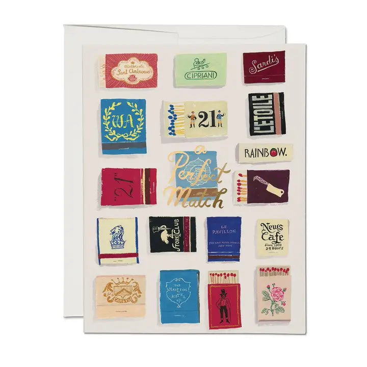Blank inside. 100lb heavyweight card stock. Offset printed and foil stamped. Illustrated by Danielle Kroll. Printed by Red Cap Cards in Los Angeles, California, USA, on recycled paper.